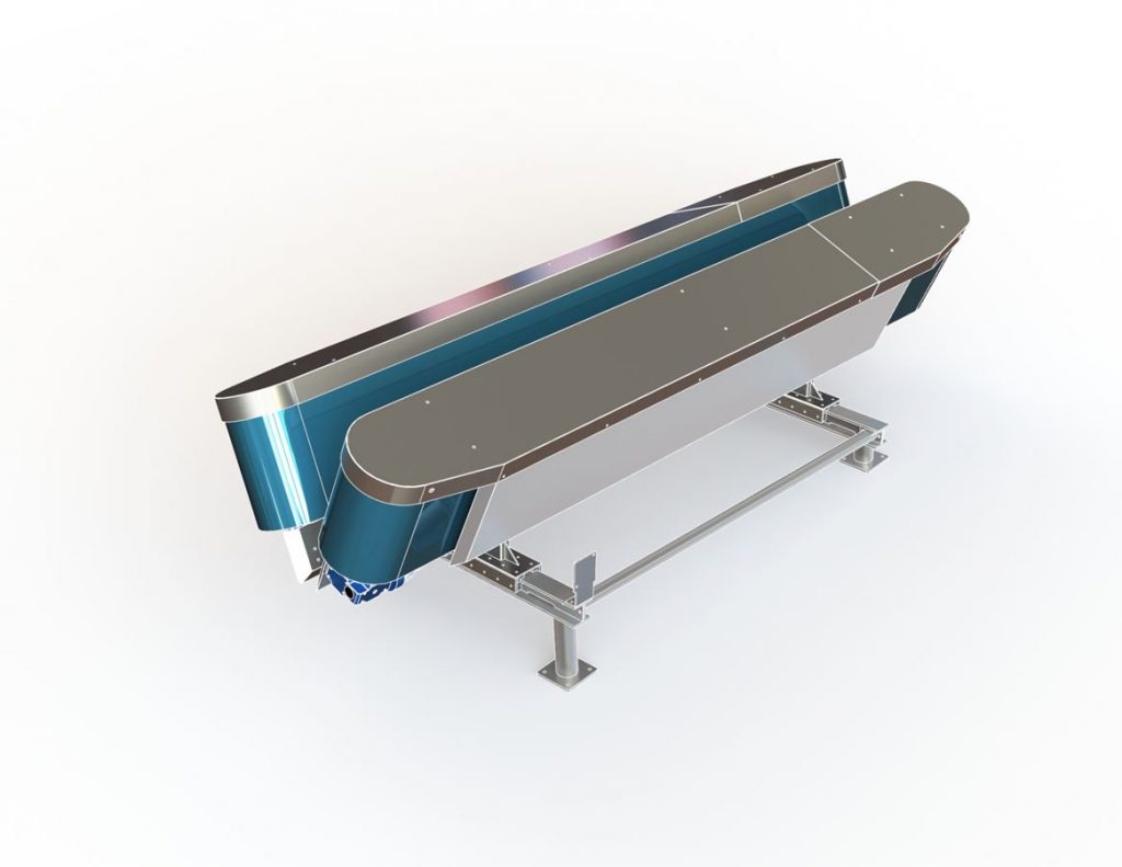 The unit has framework constructed from heavy duty stainless steel, fitted with two Volta 3mm belts, each with 3 only “B” section true tracks, blue in colour.